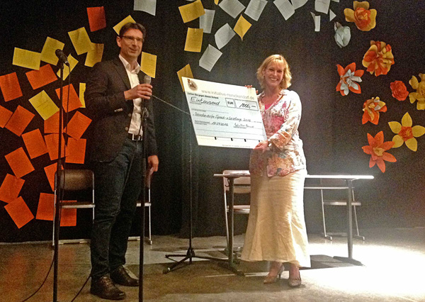Die Initiative Reinickendorf unterstützte das Lesefestival mit einem Scheck, den Beirat Carsten Lobert bei der Eröffnungsveranstaltung am 11. Juli im Georg-Herwegh-Gymnasium an Katrin Schultze-Berndt übergab. Die Reinickendorfer Bildungsstadträtin freute sich über die Unterstützung und formulierte ihre Erwartungen an einen erfolgreichen Verlauf der 6. Reinickendorfer Sprach- und Lesetagen: „Ich bin überzeugt, dass es gelingt, mit den vielfältigen Angeboten das Interesse und die Lust am Lesen bei Kleinen und Großen zu wecken.“